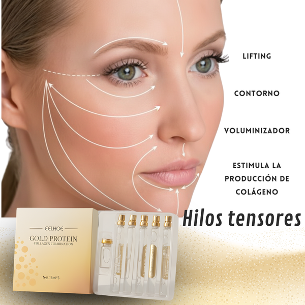 Combina hilos de colágeno absorbibles y esencia de nano oro para tensar la piel, suavizar las arrugas y restaurar la elasticidad juvenil de manera rápida y suave.